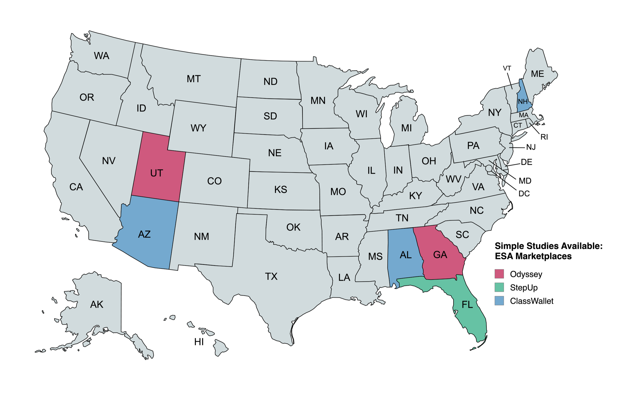 • ClassWallet: Alabama, Arizona, New Hampshire